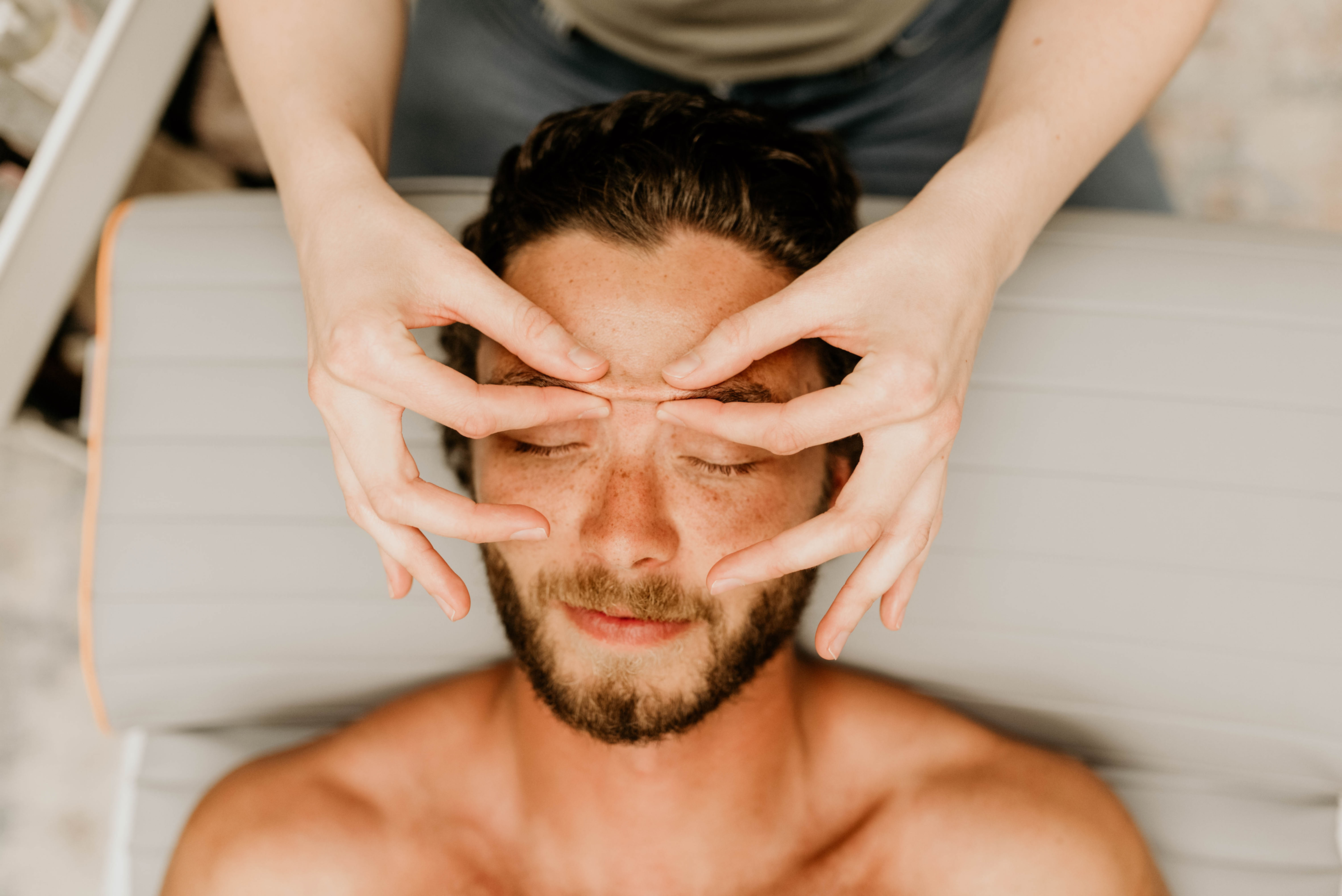 Say goodbye to headaches, tension + stress with this facial + neck massage tailored to men.